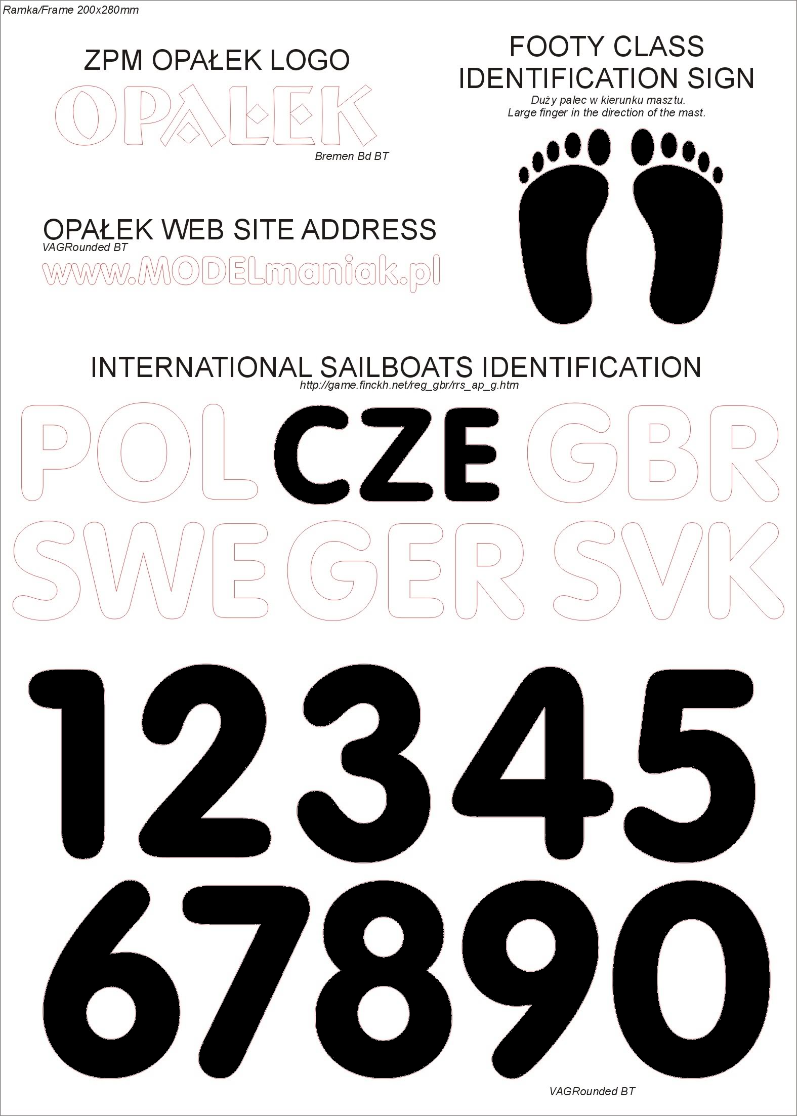 Pokud je registrační číslo obsahuje více než dvě číslice (je větší než 99), na plachtu se uvádí pouze poslední dvě číslice. Pokud je číslo plachty 01,08,10,18,80 a 81 může se před ně uvést „1“, aby se předešlo záměnám s jiným číslem. Toto také může dočasně také nařídit rozhodčí soutěže aby nedošlo k záměně modelů, např při účasti modelů se stejným koncovým dvojčíslím. Viz. pravidla třídy Footy.