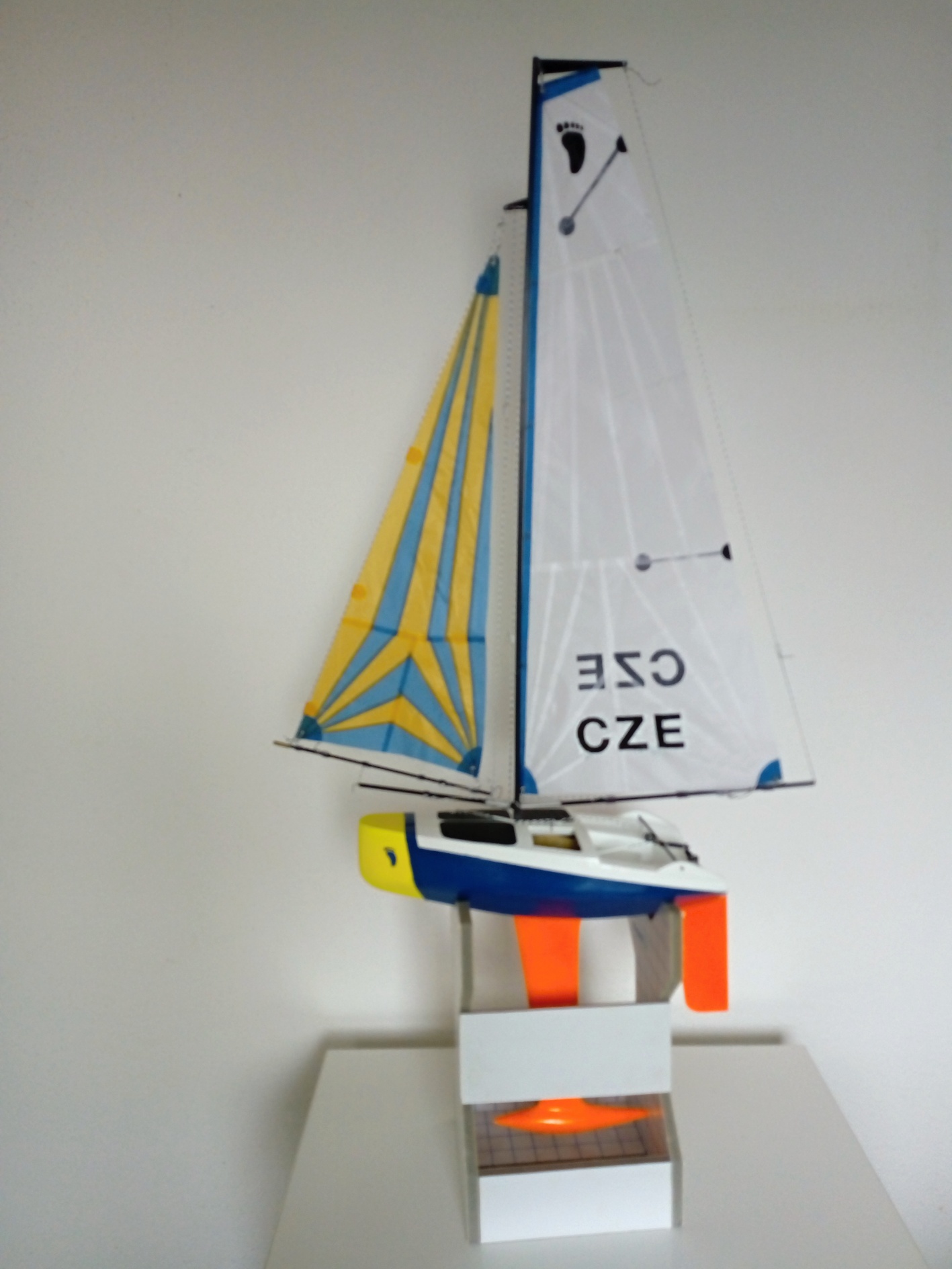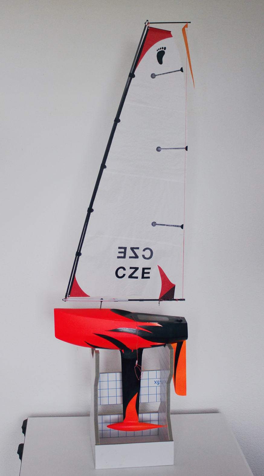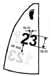 Registrační číslo má být podle pravidel uvedeno na snadno viditelném místě vně nebo uvnitř trupu a také na obou stranách hlavní plachty.