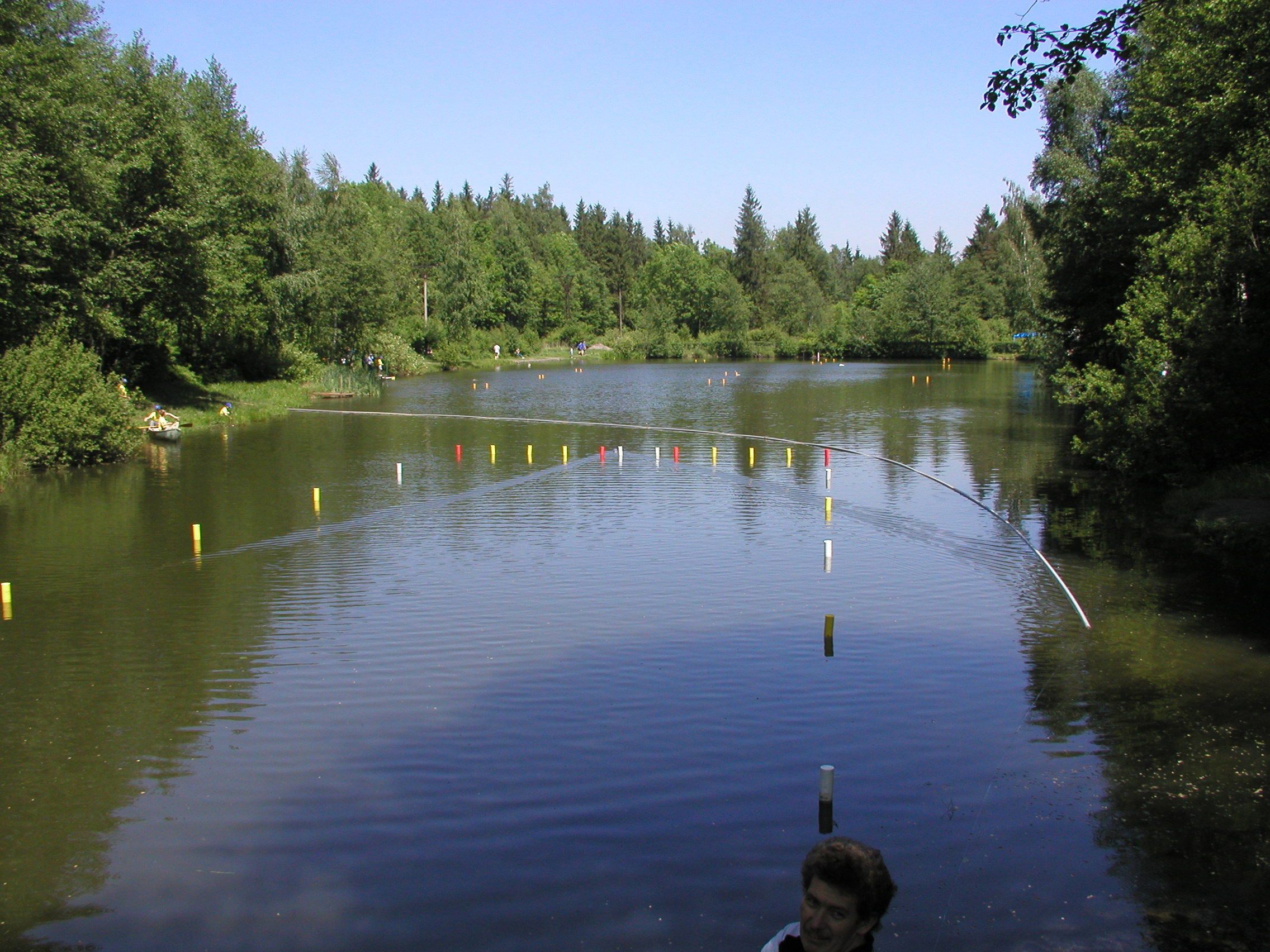VPRAVO: Jízda kategorie Footy. U protějšího břehu je vidět jízdu kategorie Eco na trojúhelníku.